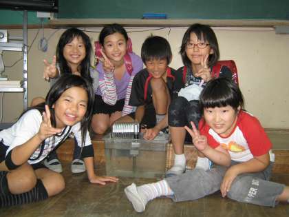 下校時刻まで一生懸命生きもののお世話をしてくれた子たちです。生きものが,少しでも長く生きてくれるといいですね。そして,また鴨川へ返してあげたいと思います。