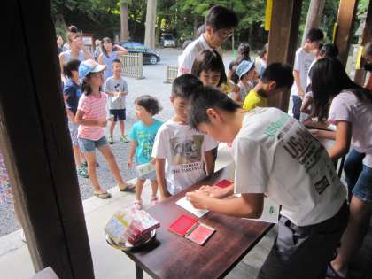 夏休みに入り,ラジオ体操が始まりました。爽やかな朝で,吉田神社にも多くの児童が集まりました。係の子どもたちもしっかり役割を果たしていました。長い夏休み,規則正しい生活を送りましょう。