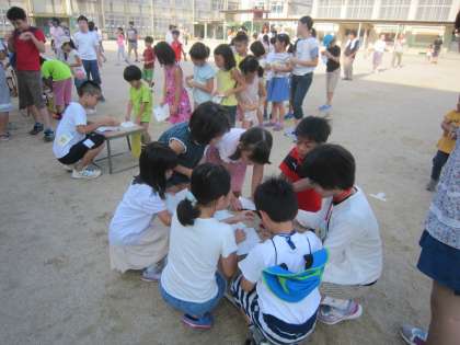 久しぶりに日差しが戻りました。今日もラジオ体操に多くの児童が参加しました。それぞれがしっかり役割を果たしてくれています。