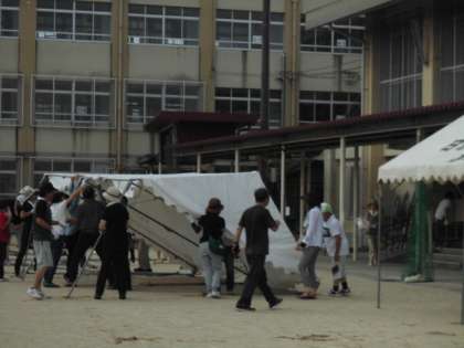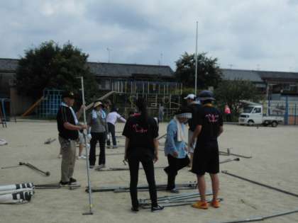 まずは、みんなで集まって、その後、テントチームととやぐらチームに分かれての作業です。