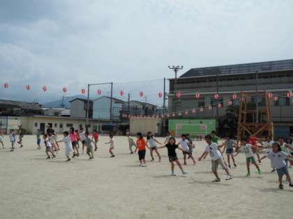 次は、体育館で、夏まつり実行委員会の子どもたちが民生児童委員の皆さんと一緒に手話コーラスをしました。出演児童が全員リハーサルに来られなかったのが残念です。