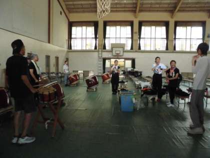 体育館では、今宮太鼓の皆さんが、最後の打ち合わせをされています。