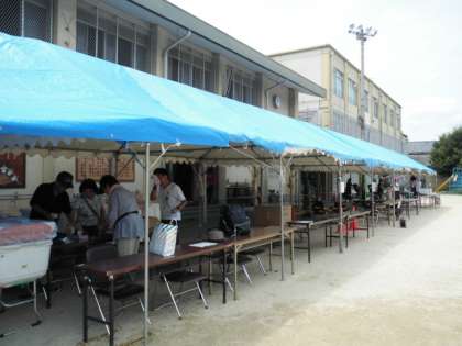 運動場には、各団体の方々が少しずつ、準備に来られました。