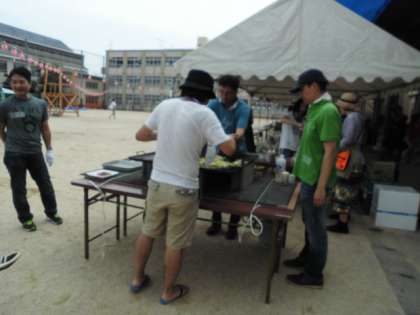 おいしそうな焼きそばのにおい、模擬店の品物の準備、ゲームの準備など、だんだん、夏まつりのムードになってきました。