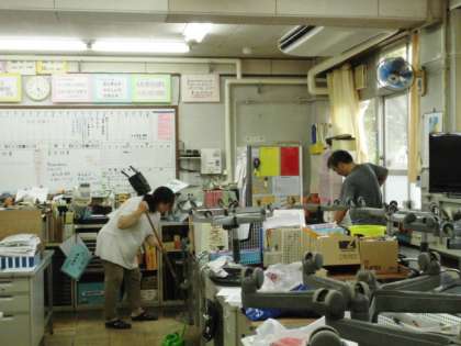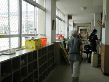 学校閉鎖期間前の最後の仕事は、職員室のワックスがけです。