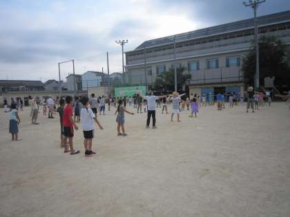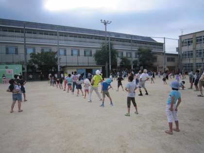 今日はラジオ体操の最終日です。昨日の暑さから引き続き,今日も大変暑い朝になりました。でも子どもたちは大変多く集まりました。明日から授業再開ということで,がんばったのでしょう。明日、みんなの元気な登校姿を待っています。
