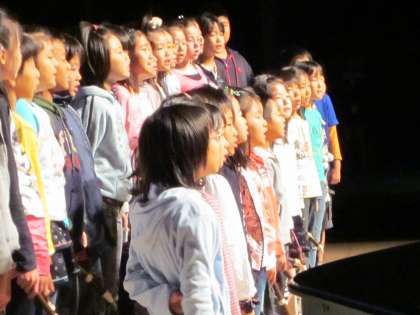 春秋座のステージに立った子どもたち。舞台袖で見ていると,緊張感が伝わってきます。「大丈夫かな。日頃の練習の成果を出せればいいのだけれど…」と心配しながら見ていました。