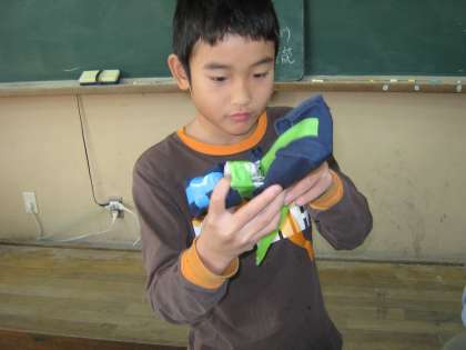 前時に書いたアイデアスケッチをもとに,お家から材料を用意してきて作り始めています。
