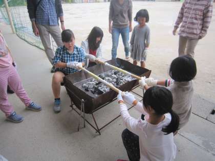 サタデースクールでバームクーヘンづくりをしました。大変根気のいる作業ですが,みんなで協力してつくりました。年輪のようにしっかりと層もでき,またおいしくできあがりました。普段では,なかなかできない経験です。お世話になったスタッフの皆さん,本当にありがとうございました。