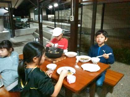 熱々のすき焼き風煮が出来ました。どの班も、嬉しそうに食べていました。やはり自分たちの手作りはの特別美味しいようです。