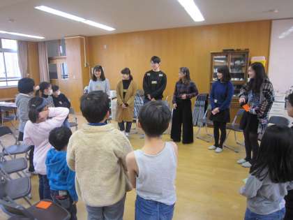 サタデースクールを実施しました。今回は同志者大学の皆さんにお世話になり,英語を使ってのゲームを楽しみました。フルーツバスケット,マッチングゲーム,トレジャーゲームなど,和やかな雰囲気でゲームを楽しんでいました。学生スタッフの皆さんの英語の問いかけにも,戸惑うことなく答えることができました。お世話になったスタッフの皆さんありがとうございました。