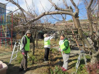 今年初めての作業日です。青空は広がっていたものの,とても寒い中,高い木に登っての剪定,枝の手入れや草刈りなど,子どもたちのために環境を整えていただき,ありがとうございました。