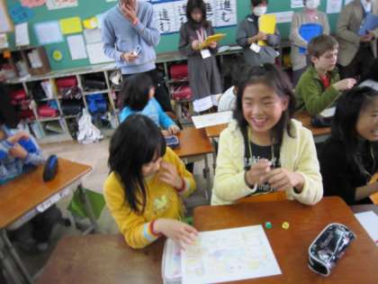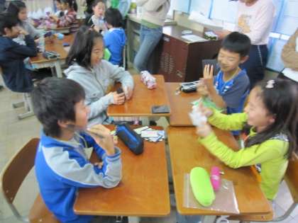 デモンストレーションでボランティアとして出てくる児童も、それを応援しながら見る児童も、グループで楽しく英語を使って伝え合う姿も見ることができました。