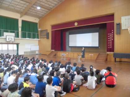 本日5月1日,学校朝会が行われました。校長先生の話をみんな真剣な表情できいていました。人を大切にする子,きまりや約束を守る子,そんなやさしい子になれますように。