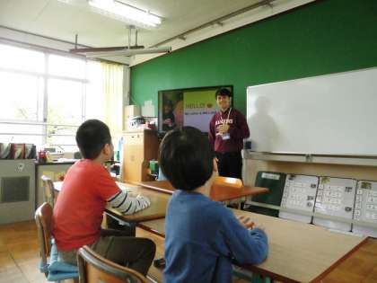 外国語活動ではALTのウィル先生に来ていただき,ウィル先生が生まれ育ったアメリカについて教えていただきました。学校では,ひとつのクラスにもいろんな国から来た人が集まっていること。食べ物でもたくさんの国から来たものがあること。家族をとても大切にしていること。様々な事を教えていただきました。