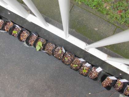 4年生が育てている,ツルレイシの芽が出てきました。子どもたちは芽が出てきて大喜びでした。