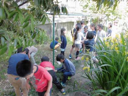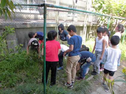 雑草が生い茂っていたため,ビオトープの草むしりをしました。頑張ってくれた4年生のおかげですっきりしました。