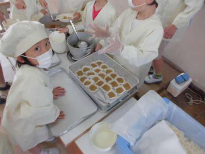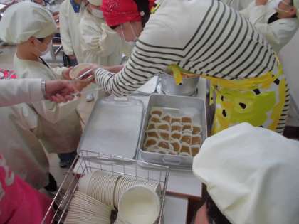 給食の時間にういろうが出ました!初めてういろうを目にした子どもたちは,とてもワクワクしている様子でした。はたして,お味の方は・・・