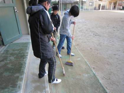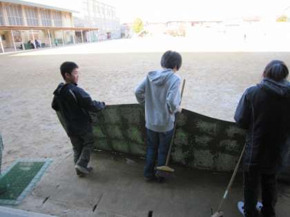 運動場がそれほどどろどろではないですが、場所によっては、かなり悪いところもあります。それで、靴に土がついて校舎内に運び込まれます。掃除はがんばっていますが、靴の土を運動場から校舎内に持ち込まないよう指導していきたいです。