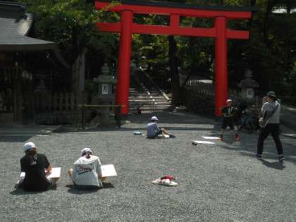 6年生が吉田神社に行き、自分が大切に思う風景を描きました。
