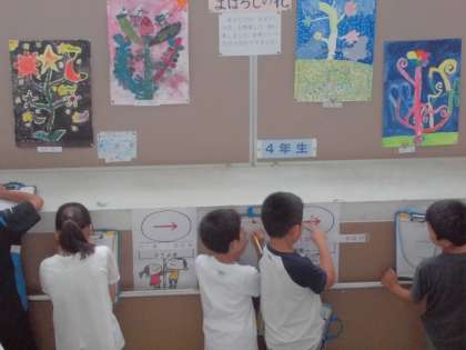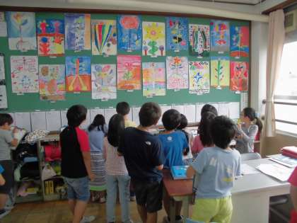 4年生が図工科で,まぼろしの花の絵を書きました。創造力豊かな作品がたくさんで,鑑賞の時間では,友達の作品のよいところ,感心したところがたくさん見つかったと子どもたちは嬉しそうに話していました。