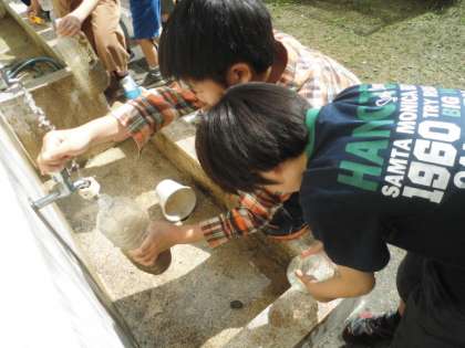 砂をペットボトルに入れて,何度も洗います。