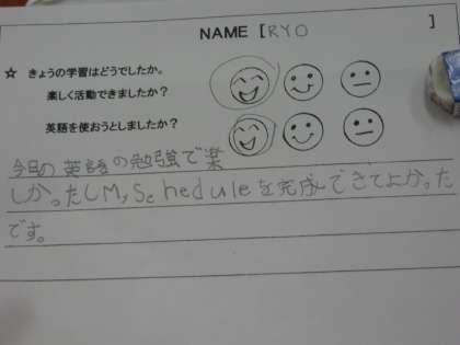 学習の単元は「My schedule」で,自分の時間割を作って交流し合いました。
