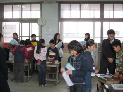 ご来賓の大学の先生から,本校の研究は,学習指導要領の趣旨をしっかりと踏まえ,コミュニケーションの適切な場を設定していること,タスクを意識した単元構成であること,教材教具の工夫とICT機器の活用などを考慮して研究を進めていることなどの評価を得ました。さらに,子どもが目的を実現するために,自然に表現したり伝え合ったりしている学習の姿に感銘されていました。
