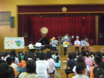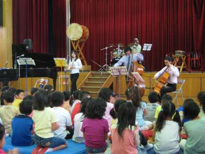子どもたちの大好きなアニメの曲から,日本の民謡,クラシック,沖縄の音楽とその歴史など多様なジャンルでの演奏に,子どもたちも時間が立つのも忘れ,楽しく聴いていました。子どもたちになじみの鍵盤ハーモニカから,フルート,チェロ,ピアノ,和太鼓,三線など多様な楽器で,興味深く鑑賞することができました。
