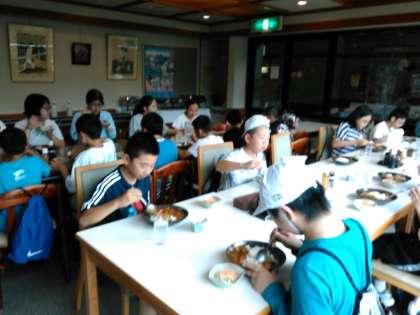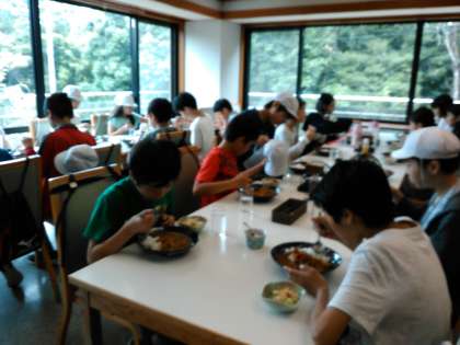 犬山国際ユースホステルで昼食です。カレーです。美味しくいただきました。たくさんおかわりして,元気いっぱいの子どもたちです!