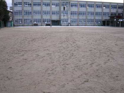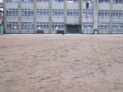 朝は、凍っていますが、中間休み頃から融けだし、歩けばどんどん泥んこのぼこぼこになります。靴に付けた土は校舎内に運ばれて、砂埃へと変化します。児童にとっては残念ですが、使用見合わせです。