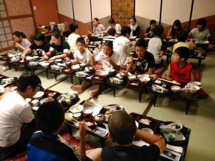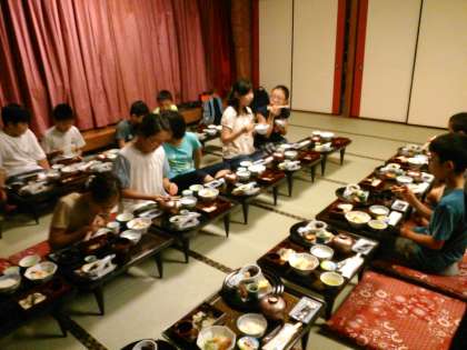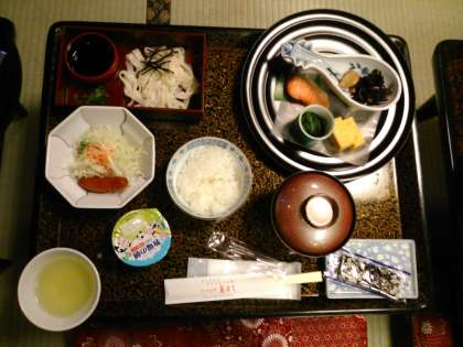今朝はとてもよい天気。暑くなるようです。朝食です。名古屋名物のきしめんがあります。みんな元気にしています。