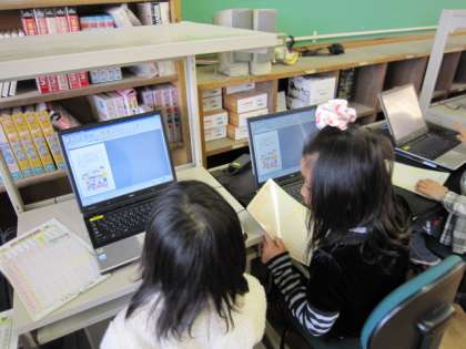 ローマ字入力という課題が、付けたい力が明確になった授業時間です。コンピュータは、児童にとって魅力があります。ローマ字表を片手に確認して入力。変換をするとひらがななどになり正しく入力できたかどうか自己評価できます。