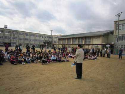 1月は、地震の避難訓練を毎年していますが、今回は、休み時間に地震が来たという想定です。しっかりと放送を聞き1次避難、全員の安全確認などを行いました。