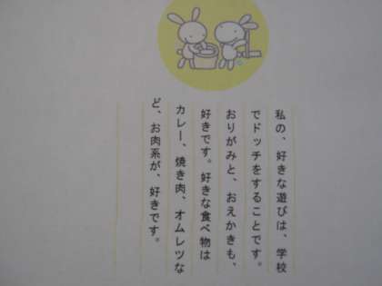初めは,キーボードのどこにどのキーがあるのかを探すだけでもかなりの時間が必要でしたが,次第に慣れて,ローマ字表を見ながら,簡単な自己紹介のカードを作りました。