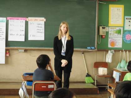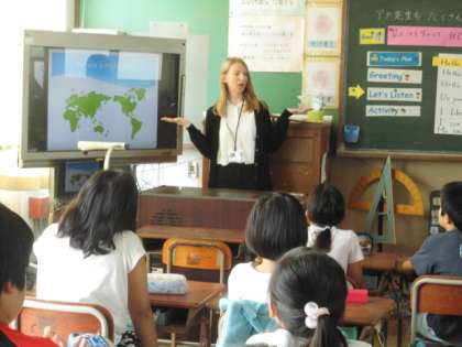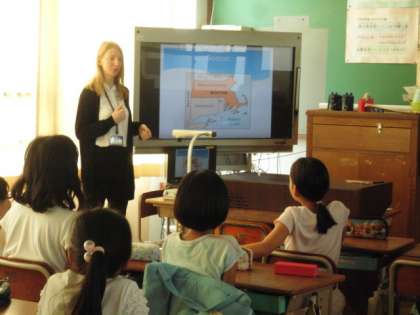 初めての授業です。写真を見せながら、自己紹介をしてくださいました。