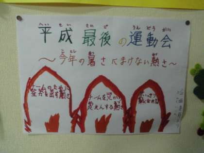 明日の運動会のスローガンです。