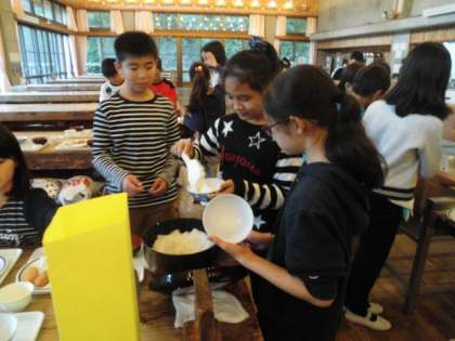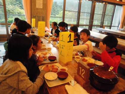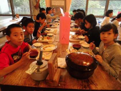 食事係もよく頑張っています。テーブルをふいたり、お茶の準備をしたり、また、ごはんもよそっています。