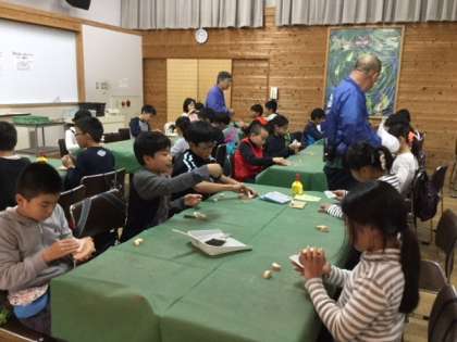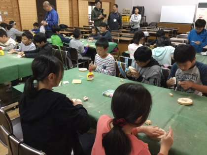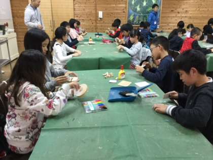 午後は,雨のためスコアオリエンテーリングはできませんでした。代わりにウッド写真立てを作りました。丸太をもとに作ります。