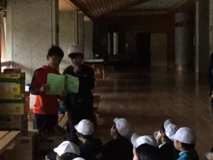朝の集いも研修室前で行いました。