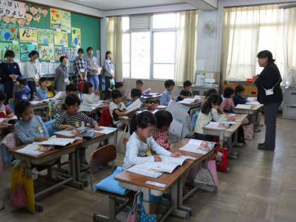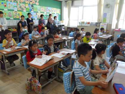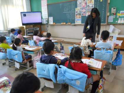 1年生は、「世界中のこどもたちが」という教材で世界のさまざまな人や文化に親しみをもち、世界中の子どもたちと仲良くしていこうとする心情を育てることをねらいに学習しました。「世界中のこどもたちが」の歌も楽しく歌いました。この歌詞のようになればいいですね。