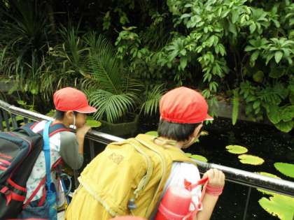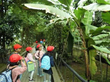 午後は,広い芝生広場での自由遊びです。だるまさんがころんだや,バラ園の探検など,みんな思い思いに楽しみました。温室の見学では,南国のフルーツや世界一大きいラフレシアの花を見つけることができました。