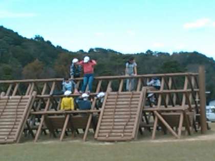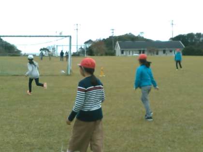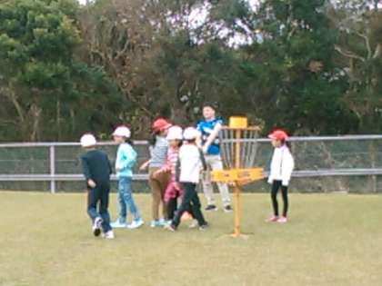 芝生広場でフリータイムです。風が強いですが,楽しく遊んでいます。