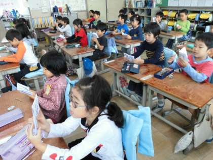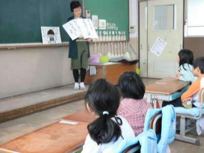 栄養教諭の先生に「まほうのたべかた」について教えてもらいました。苦手な食材があっても,魔法の言葉を唱えて,おいしく味わえるようにしようというお話でした。魔法の食べかたのミニ絵本を一人一冊いただきました。その絵本を手に,さっそく,その日の給食時間から,苦手なものも頑張って食べようとしていました。