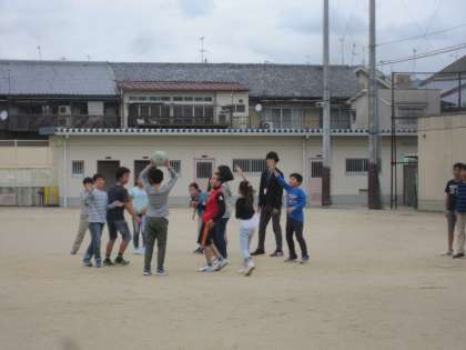 先月から4週間,教育実習の先生と一緒に勉強したり遊んだりしていましたが,いよいよ今日が最後になりました。6時間目に,子どもたちと教育実習の先生とで,一緒にドッジボールをして遊ぶ姿がありました。みなさん,いい思い出になったのではと思います。