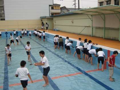 プールに向けて5年生と6年生でプールの掃除をしました。