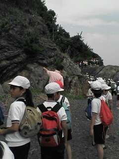 宮崎浜へ,出発!途中,地層のよく分かるところを通りました。