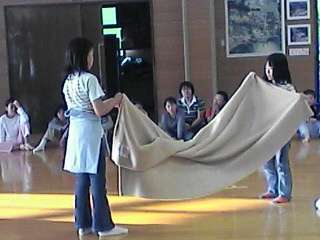テントの中では,寝袋を使います。6月ですが,テントでは,夜中,明け方冷え込むこともあります。毛布も使いますので,同じように,毛布のたたみ方も教えていただきました。テストもありました。