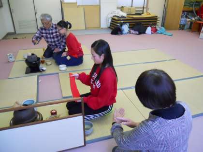 茶道部が土曜日の「卒業茶会」に向けて猛練習をしています。