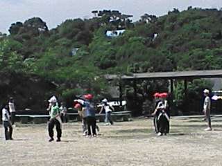 昼食後は,野外ゲームの時間です。快晴のもと,いろいろな遊びを,グループで相談して,安全に気をつけて,行いました。